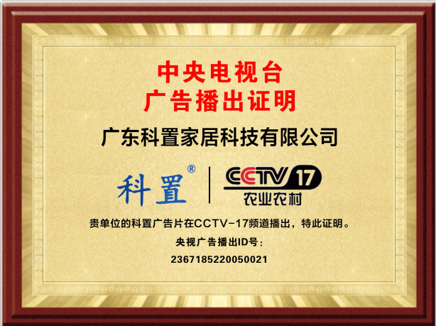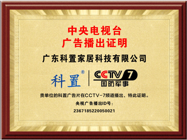 科置门窗经过严格的质量审核、舆情监控、企业资质筛选等等严格的条件下,最终成功登陆中央电视台CCTV-1CCTV-7 CCTV-17正式播出。