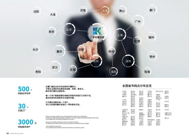 扎根于广东佛山的科置门窗,以全局发展视野已先后在全国建立30家工厂,设立500多家专卖店,拥有立体化营销网络,以精细化的运营政策扶持经销商市场开展,推动品牌向全国市场开拓,持续深化品牌传播战略,提升品牌市场竞争力。