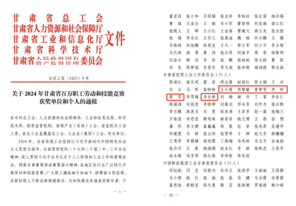 据悉,“甘肃省技术标兵”:由甘肃省人力资源和社会保障厅、甘肃省总工会、甘肃省工业和信息化厅、甘肃省科学技术厅、甘肃省人民政府国有资产监督管理委员会联合授予。为大力培育和弘扬劳模精神劳动精神工匠精神,表扬先进,树立典型。