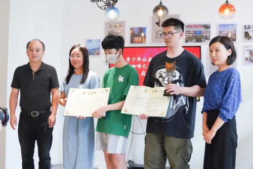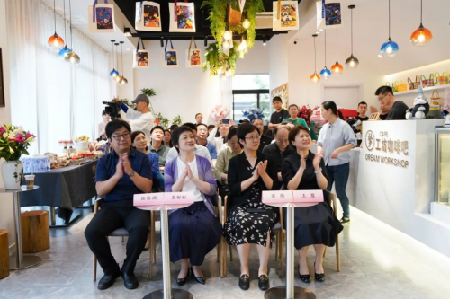 在青少年公益助残捐赠暨梦工坊咖啡之旅爱心鼎传递仪式中,上海惠立学校和爱心家长章煦春向基金会捐赠了爱心款项,用以支持今年的青少年助残咖啡之旅公益。最后,领导们一起为兰梦湾共享空间·梦工坊咖啡启动揭幕。