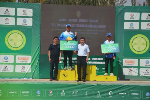 疏勒县委副书记,山东省东营市援疆工作指挥部党委书记、指挥赵峰,郑州马焱精品渔具有限责任公司总经理马焱和威海东道户外用品有限公司西北地区经理赵璞为季军颁奖。