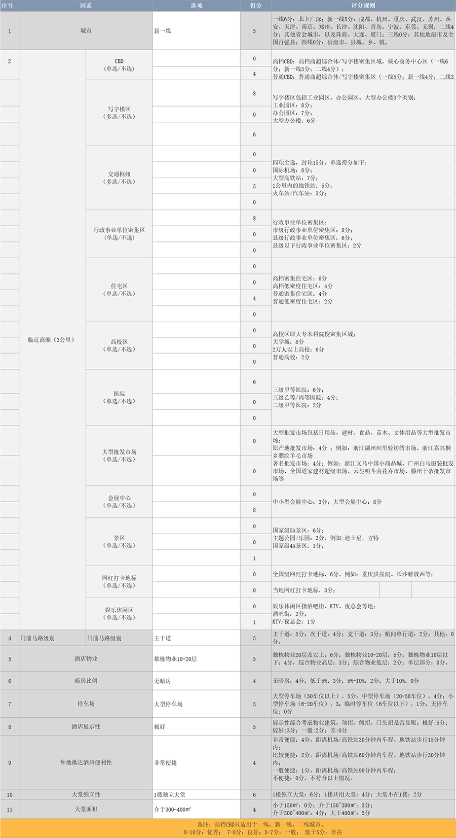 注:丽柏酒店物业评估标准分值表