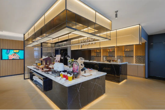 举例来看,丽柏酒店在客房中打造防干扰的深空休眠设计,为商旅用户最刚需的睡眠体验保驾护航;在空间利用上,丽柏酒店精心打造了涵盖便捷办公空间、会议空间、24小时美食站、餐吧等的复合空间,满足了不同住客的办公和用餐需求。