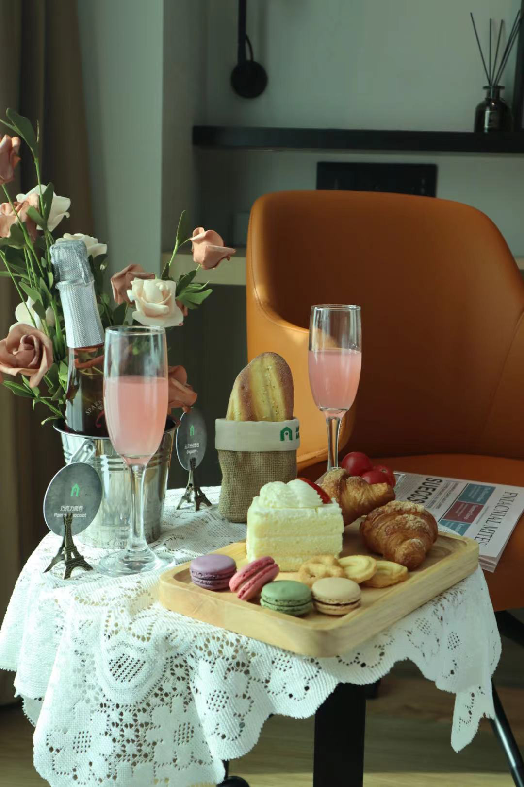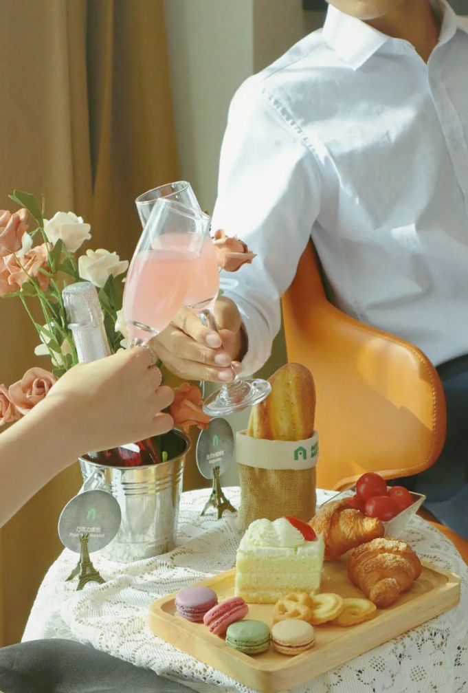 康铂酒店准备了七夕法式主题房套餐:下午茶布置、香槟微醺、甜蜜甜点、房间提供法式报纸、浴袍、眼镜……温柔的窗帘随意垂落在通透的落地窗,午后的阳光洒进来房里温暖又柔和,随意的一个角度空间呈现,都充满着优雅精致。