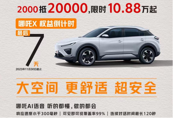 留给大家选车的时间已经不多了!哪吒X两千抵两万钜惠开始倒计时!