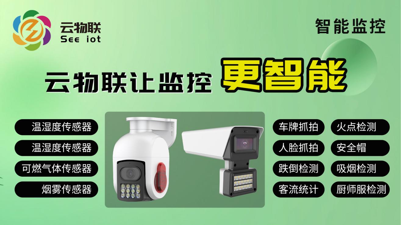 云物联品牌监控摄像机产品,物联网摄像机领导者,在保证摄像机图像效果和夜视效果以及监控功能的基础上,我们将摄像机硬件做了完善的接口连接,可以拓展温湿度,烟感,气体检测,土壤检测,环境检测等等物联网传感器,并且在云端和手机APP上做了功能的应用,在软件和AI功能上,通过各种算法的植入,可以实现如人脸识别,人脸检测,安全帽识别,深度周届,火焰检测,跌倒检测,人数统计等人/车/物体/动物/植物/行为动作等等智能分析功能,通过硬件,探测器,算法,云端,手机app整套系统的整合应用,实现民用安防的智能化升级和智能ai功能的落地,让更多场景化的监控系统变得更加智能,物联网时代来临,物联网监控摄像机将成为必不可缺的一种产品和趋势。