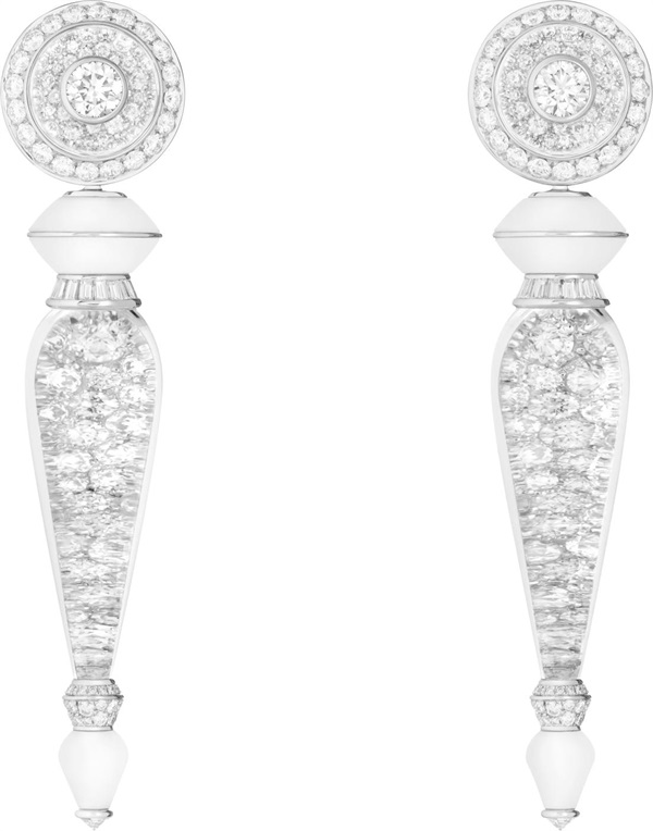 该主题作品另有一对耳环同样采用蕾丝造型设计,并且镶嵌了 662 颗圆钻。