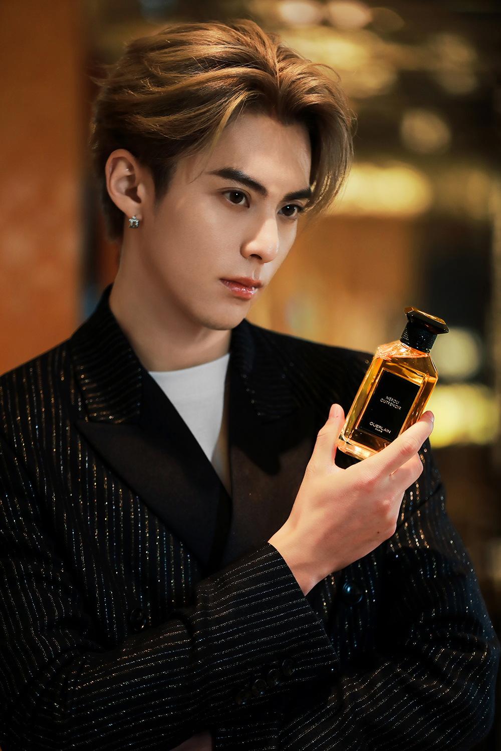 图:法国娇兰香水代言人王鹤棣手持艺术沙龙精品香水系列