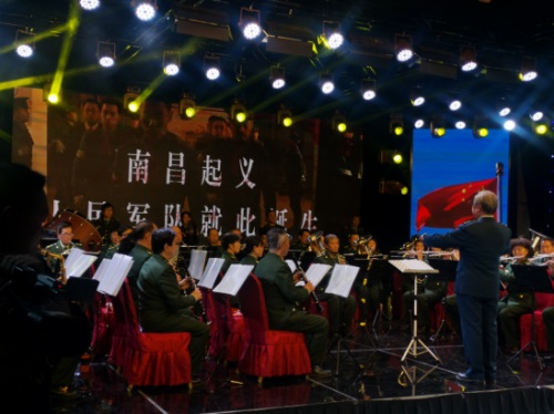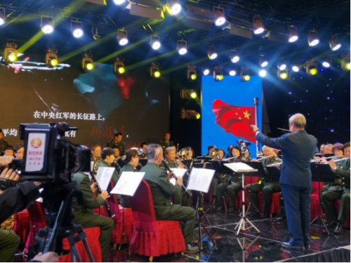 音乐会在管弦乐合奏《军歌联奏》中,拉开序幕。随着雄壮激扬的音乐响起,LED屏幕上“南昌起义”“秋收起义”“井冈山会师”“血战湘江”“战略大转移”“遵义会议”“四渡赤水”“强渡大渡河”“飞夺泸定桥”“爬雪山、过草地”“1935 年陕北吴起镇会师”等珍贵历史镜头依次闪现。
