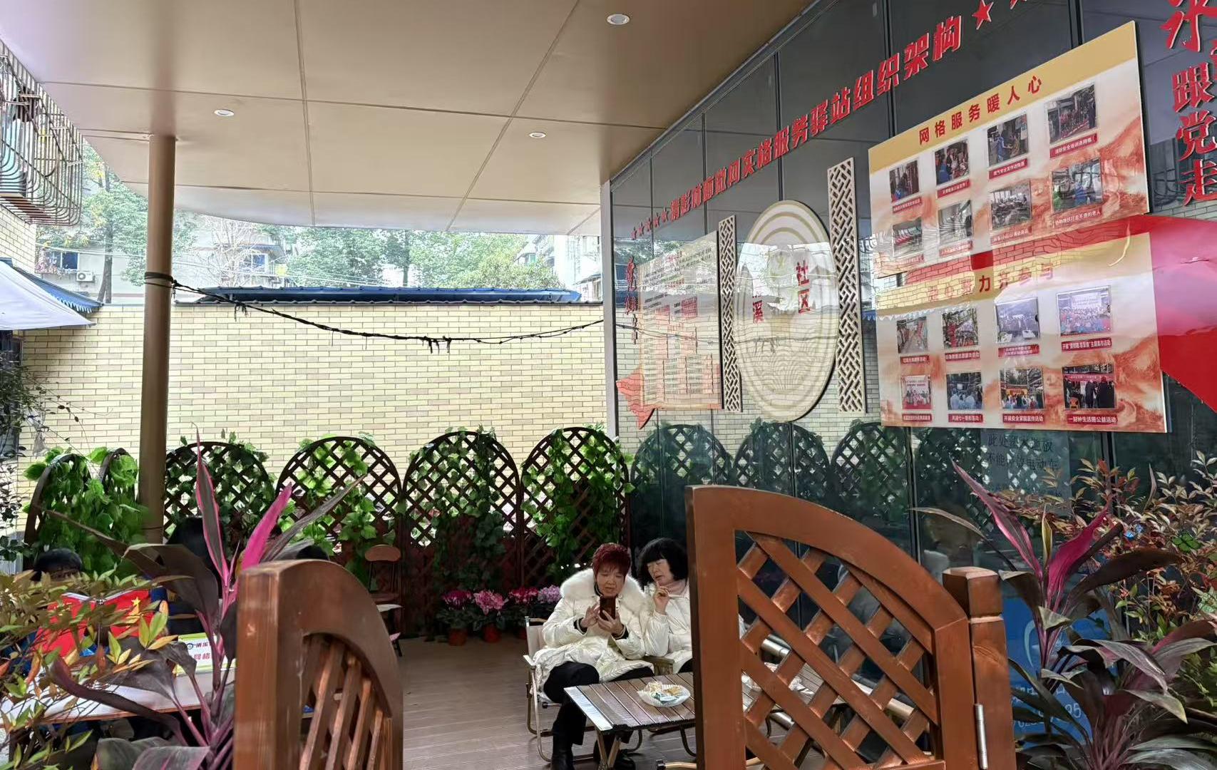 在清溪南街18号与19号大院中间,通过街区改造升级,腾出了一块闲置空间,社区将这一处小小的空间改造成了社区清影林廊微网实格服务驿站,木质的推门,镂空的弓形栅栏,四周围着绿植与鲜花,中间摆放着休闲沙滩座椅与小木桌,这个微网实格阵地就是一个小巧而温馨的户外小花园。“我们这一片都是老旧院落,院落空间非常有限,这个微网实格服务驿站虽然比较小,却能在党建引领基层治理上发挥大作用。”社区负责人告诉记者,社区网格员每天都会来到这里,和居民一起摆龙门阵,倾听居民的心声,了解和收集居民的诉求。平时,居民更是将这里作为休闲活动的好地方,大家围坐在一起,晒晒太阳,喝喝茶,增进交流与感情,邻里之间更加和谐友好。