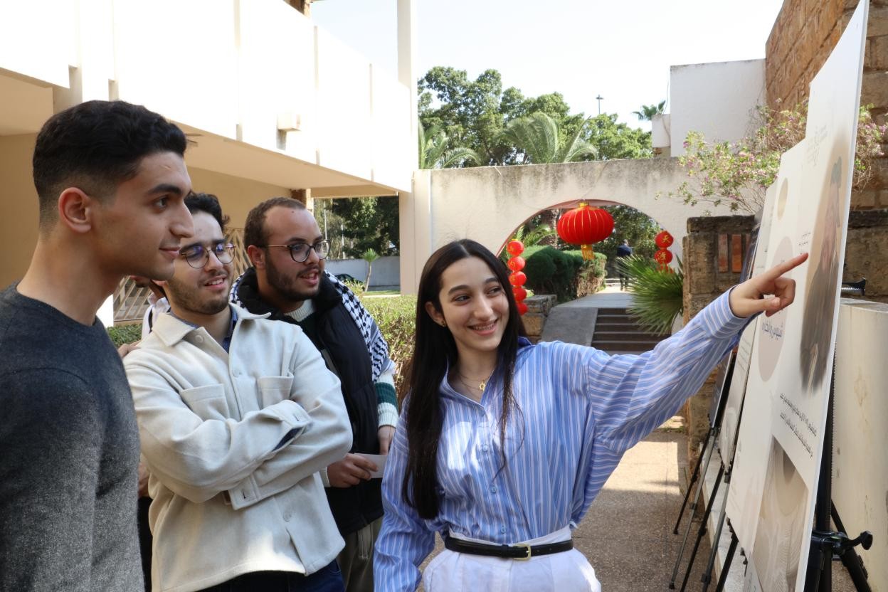 摩洛哥大学生在观看《永远的孔子》图片展。拉巴特中国文化中心供图‌