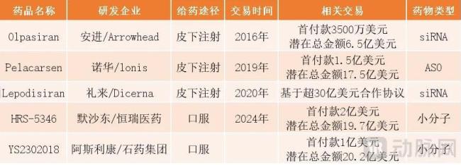 部分Lp(a)靶点新药相关交易 数据来源:动脉橙数据库
