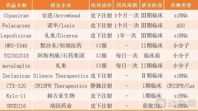 部分Lp(a)靶点在研新药管线进展 数据来源:动脉橙数据库