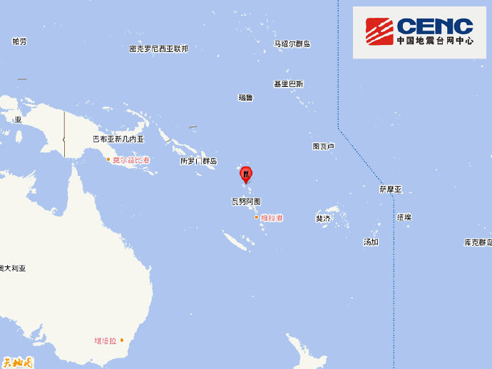 瓦努阿图群岛发生5.7级地震 震源深度210千米