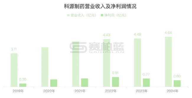 同期,科源制药营收体量连续5年逐年上涨,但截至2024年营业收入未超过5亿元;而其净利润水平从2023年开始出现下滑,降幅约15.6%,2024年其净利润又进一步下降21.5%,至0.6亿元。