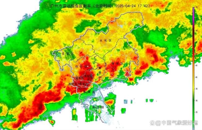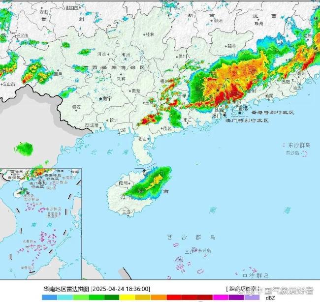 从4月23日起,暴雨带向南移动,进入江西南部、广东北部和福建南部。4月24日,广东成为暴雨中心。清晨起,暴雨云团在粤北山区盘旋,韶关和清远开始急骤的暴雨和大暴雨。午后,分散的暴雨云团迅速组装成一道贯穿广东和福建的巨大飑线,所到之处普遍电闪雷鸣、狂风暴雨。韶关和广州部分自动站记录到12级阵风,广州佛山市区阵风达到7至9级,东莞和深圳等地达到6至8级。海珠区一度发布龙卷风提示,广州局部24小时降雨量突破200毫米。在暴雨带的持续影响下,广东于4月25日夜间达到气象入汛临界状态,即将正式进入气象意义上的前汛期。