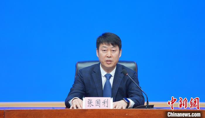 黑龙江省商务厅党组成员、副厅长张国利在发布会上介绍黑龙江省开展促消费情况。刘心杨 摄