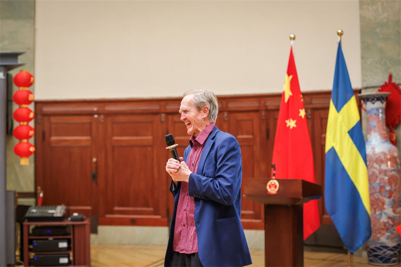 瑞典著名语言文化学者延斯·奥尔伍德教授发言。中国驻哥德堡总领馆供图