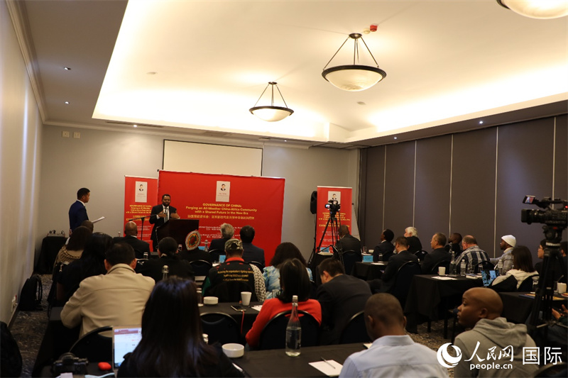 人民网比勒陀利亚4月27日电 (记者戴楷然、郑翔)25日,由中国外文局主办的“治国理政读书会”在南非行政首都比勒陀利亚举行。与会嘉宾围绕“筑牢新时代全天候中非命运共同体”这一主题,就中非治国理政经验交流互鉴、中非各领域务实合作、青年交流及人文互动等议题展开讨论。来自南非政府部门、智库学者以及媒体等50余人参会。