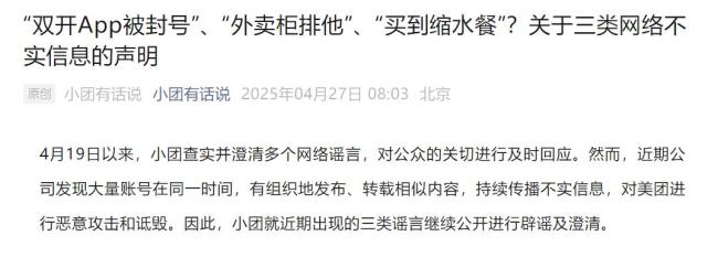 “外卖柜排他”、“买到缩水餐”?美团针对不实信息辟谣 澄清谣言维护权益