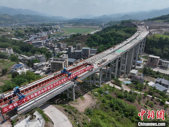 中新网重庆4月27日电 (张旭)4月27日,随着最后一片长40米的T梁平稳架设,由中铁二十五局承建的万开达高速公路岳溪河大桥实现贯通,为该高速全线通车奠定了坚实基础。