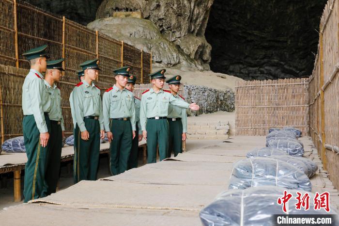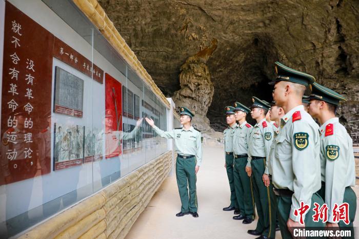 “我志愿加入中国共产主义青年团,坚决拥护中国共产党的领导……”在列宁岩内,武警官兵整齐列队,面对鲜艳团旗庄严宣誓。他们紧握右拳,铿锵的誓言在溶洞内久久回响。