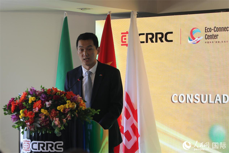 人民网里约热内卢4月24日电 (记者宋亦然)当地时间4月24日,中国中车“绿驰”交流空间(巴西)在巴西里约热内卢正式启用。中国驻里约热内卢总领馆商务参赞敬艳辉、里约州民政厅厅长尼古拉·莫雷拉·米乔内出席启动仪式并致辞,仪式主办方中车长春轨道客车股份有限公司代表和中巴两国各界人士约100人参加活动。