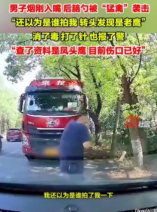 男子路边抽烟后脑勺被老鹰袭击:头剧痛,已打针,并报警