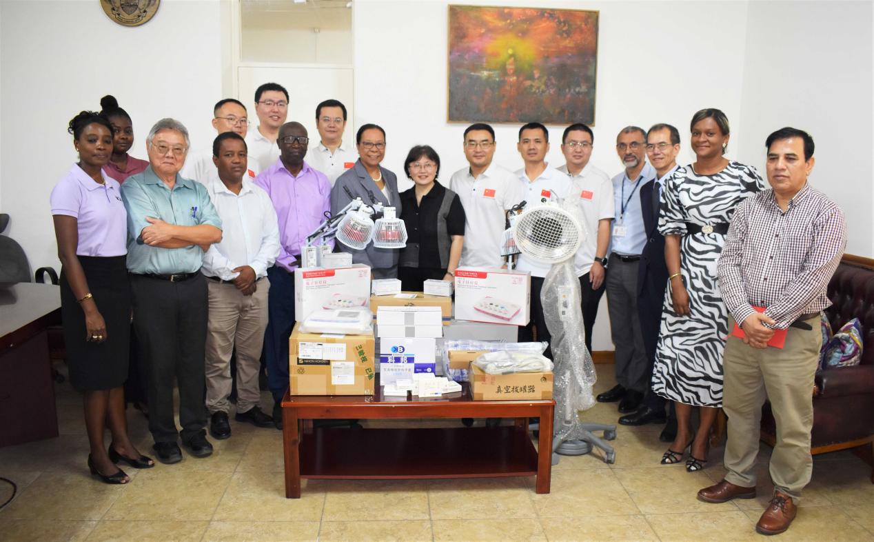 中方向塞舌尔维多利亚医院捐赠医疗设备。驻塞舌尔使馆供图