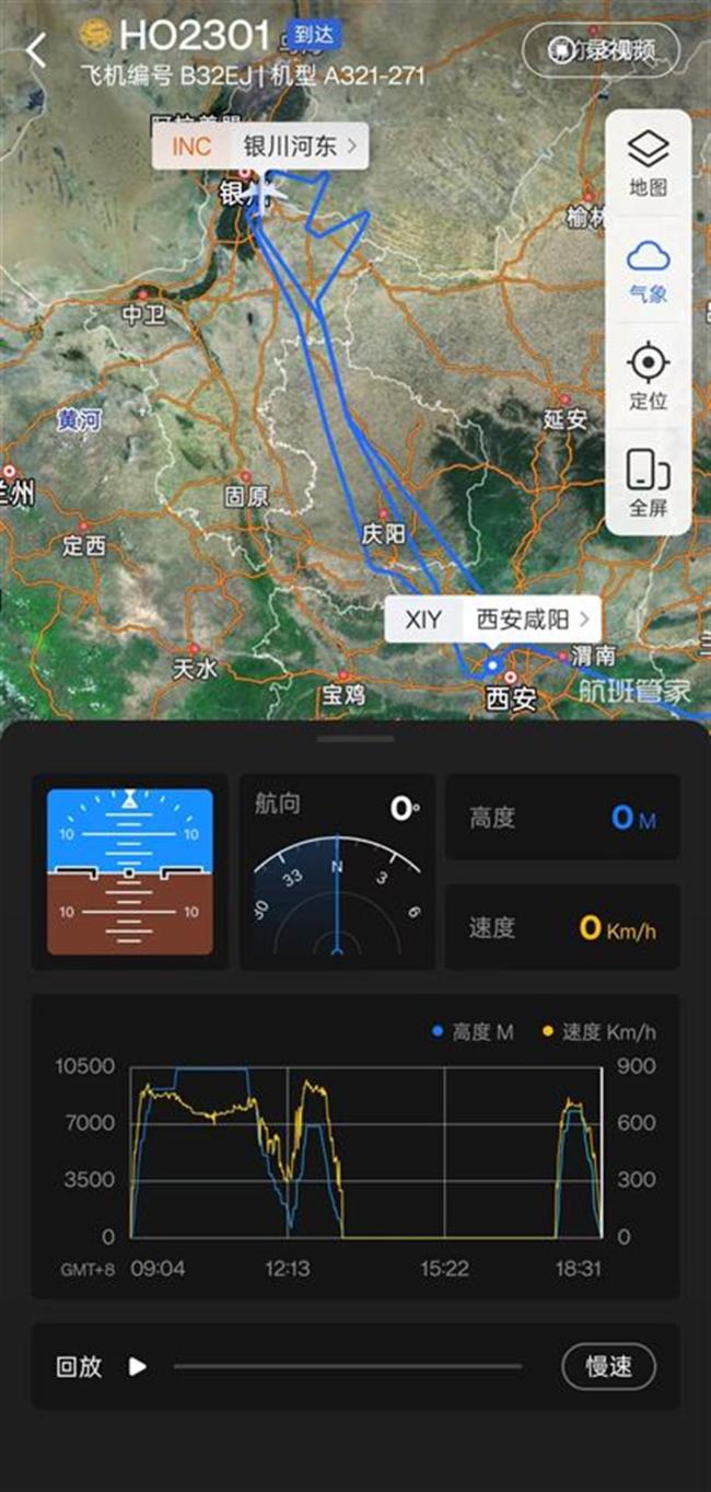 5月5日,上海飞往银川的HO2301次航班在准备降落时遇到意外状况。飞机在已经轮子接地的情况下再次复飞,最终成功备降西安咸阳国际机场,并于同日晚安全抵达银川。