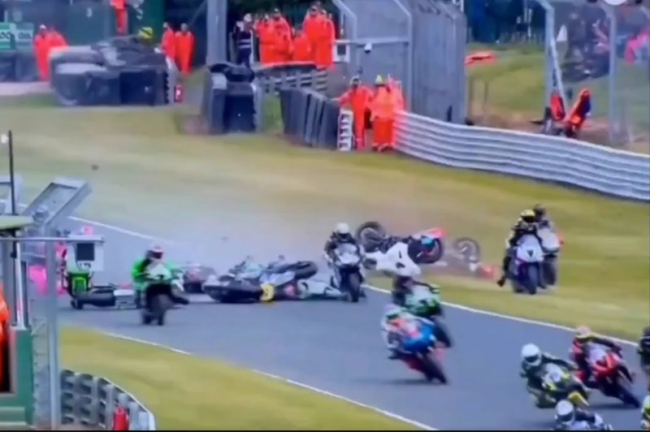 英国摩托车赛11车相撞2死6伤 赛事取消调查展开。在英国柴郡Oulton Park赛车场举行的国次级别超级摩托车赛(British Supersport)中,周一发生了一起严重的多车连环相撞事故。比赛刚开始的第一个弯道处,11位车手倒地,其中一辆摩托车还着火燃烧。赛事组织者立即出示黑旗暂停了比赛,并派遣医护人员进行紧急救援。由于事故严重,该锦标赛最终被取消。