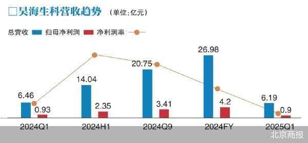 财务数据显示,2024年,昊海生科实现的营业收入约为26.98亿元,同比增长1.64%;对应实现的归属净利润约为4.2亿元,同比增长1.04%;对应实现的扣非后净利润约为3.79亿元,同比下降1.12%。公司整体毛利率由上年的70.46%下降为69.89%。