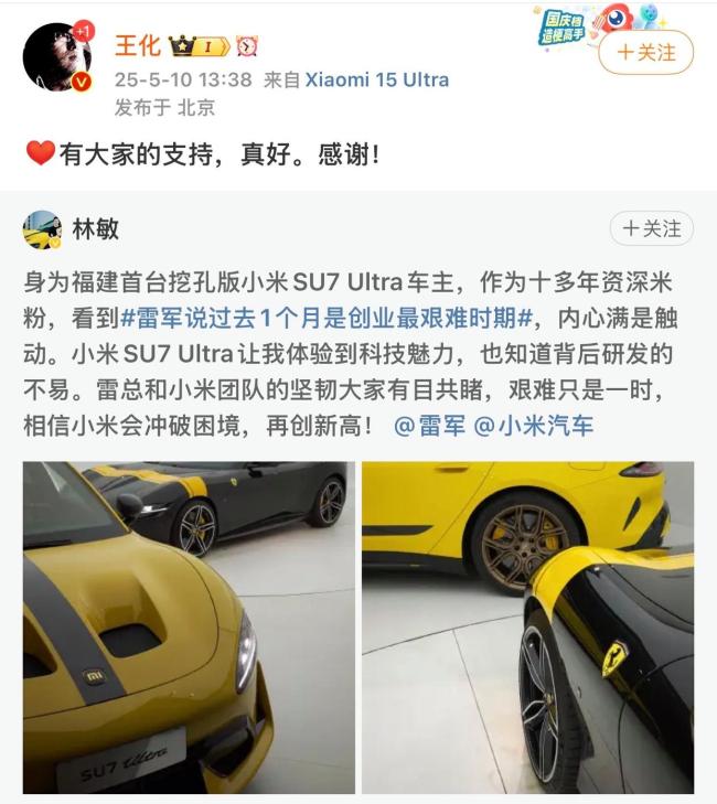 王化感谢SU7 Ultra挖孔版车主支持 米粉力挺小米共渡难关