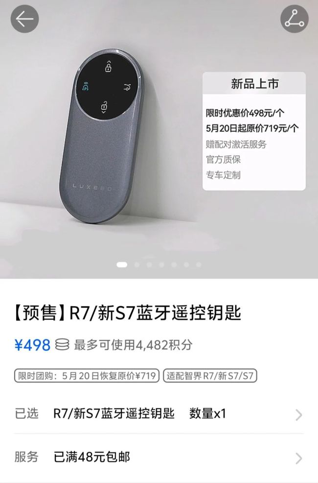 智界不配蓝牙车钥匙 单买719元一把 车主吐槽“双标”行为