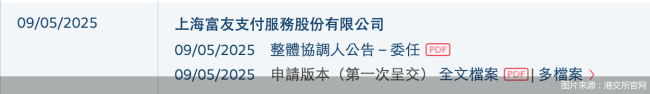 就在5月8日,富友支付于2024年11月8日递交的港股招股书,在提交满6个月后进入失效状态。而富友支付本轮上市进程可追溯到一年前,2024年4月,富友支付向港交所递交招股书,计划在主板挂牌上市,同年10月公司招股书失效。