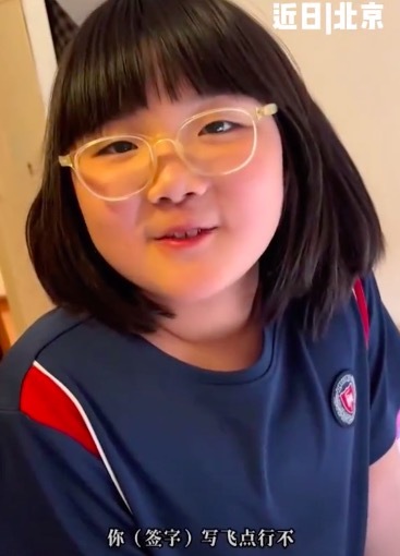女儿要求爸爸签名写潦草点:你字写飞点儿!