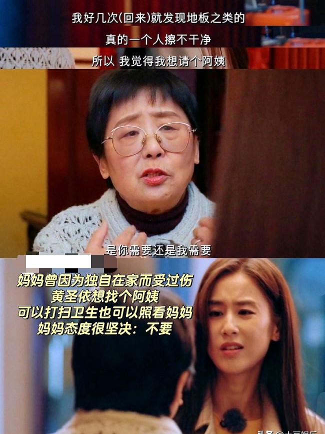 当初黄圣依、留几手和麦琳讨论请阿姨打扫时,黄圣依就说请阿姨这事,爸爸同意,妈妈坚决不同意,那会还以为是小事