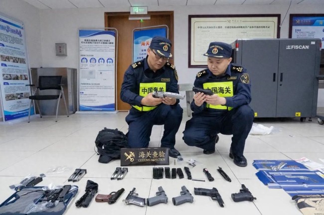 海关在入境车辆查获六把枪支 压缩气体为动力