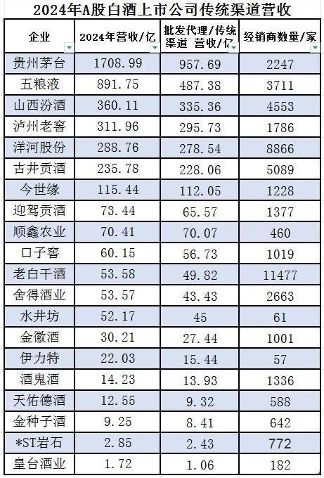另外,老白干酒“一树三香五花”,包括衡水老白干、板城酒业、文王贡、武陵、孔府家五家酒企,2024年末经销商数量为11477家。
