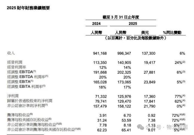 阿里巴巴2025财年全年营收9963.47亿元,同比增长6%