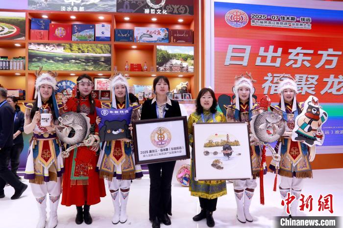 一旁的赫哲族文化展区更宛如一座小型博物馆。鱼皮画《乌苏里船歌》用传统技艺描绘渔船夕照,中外客商在非遗文创中感受佳木斯独特的“三江文化”魅力。