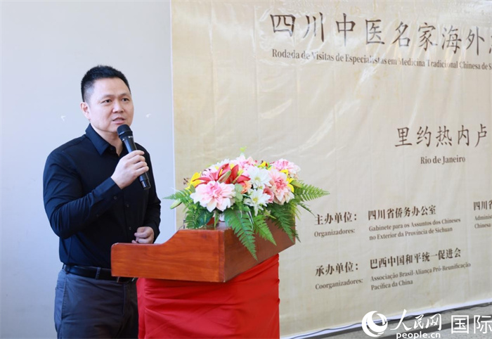 中国驻里约热内卢总领馆副总领事王尉育在致辞中表示,中医文化博大精深,是中华优秀传统文化的重要代表,深受海外侨胞喜爱。此次四川中医专家远道而来,体现了对侨胞的深切关怀。他希望侨胞继续发挥“以侨为桥”的作用,积极向当地社会传播中医文化,让更多巴西民众了解中国、亲近中国。