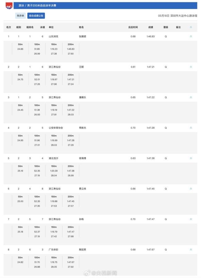 2025年全国游泳冠军赛于5月17日在深圳开赛。作为国内游泳项目的最高级别赛事,同时也是第十五届全运会游泳项目资格赛和2025新加坡游泳世锦赛选拔赛,此次比赛的含金量颇高。