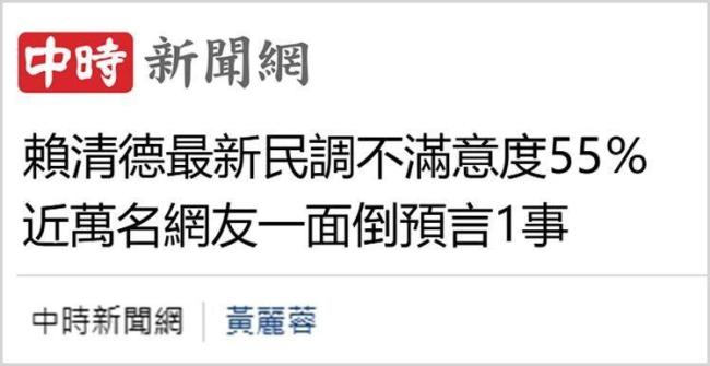 近日,岛内多份民调结果出炉,民众对赖清德和民进党当局的评价惨不忍睹。TVBS民调显示,赖清德的不满意度达55%,是其上台以来新高;雅虎奇摩网站投票结果呈现“一面倒”,参与投票的网友中,有近八成对民进党当局投下“非常不满意”。