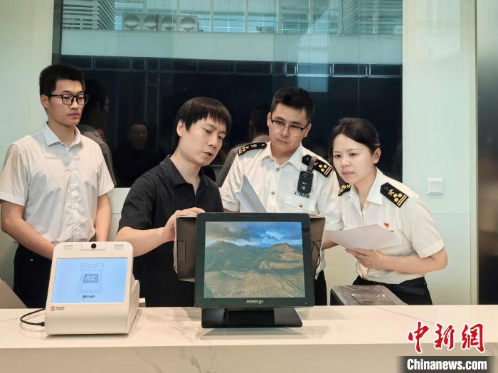5月16日,武汉海关关员对武汉市内免税店口岸提货点进行验收。武汉海关供图