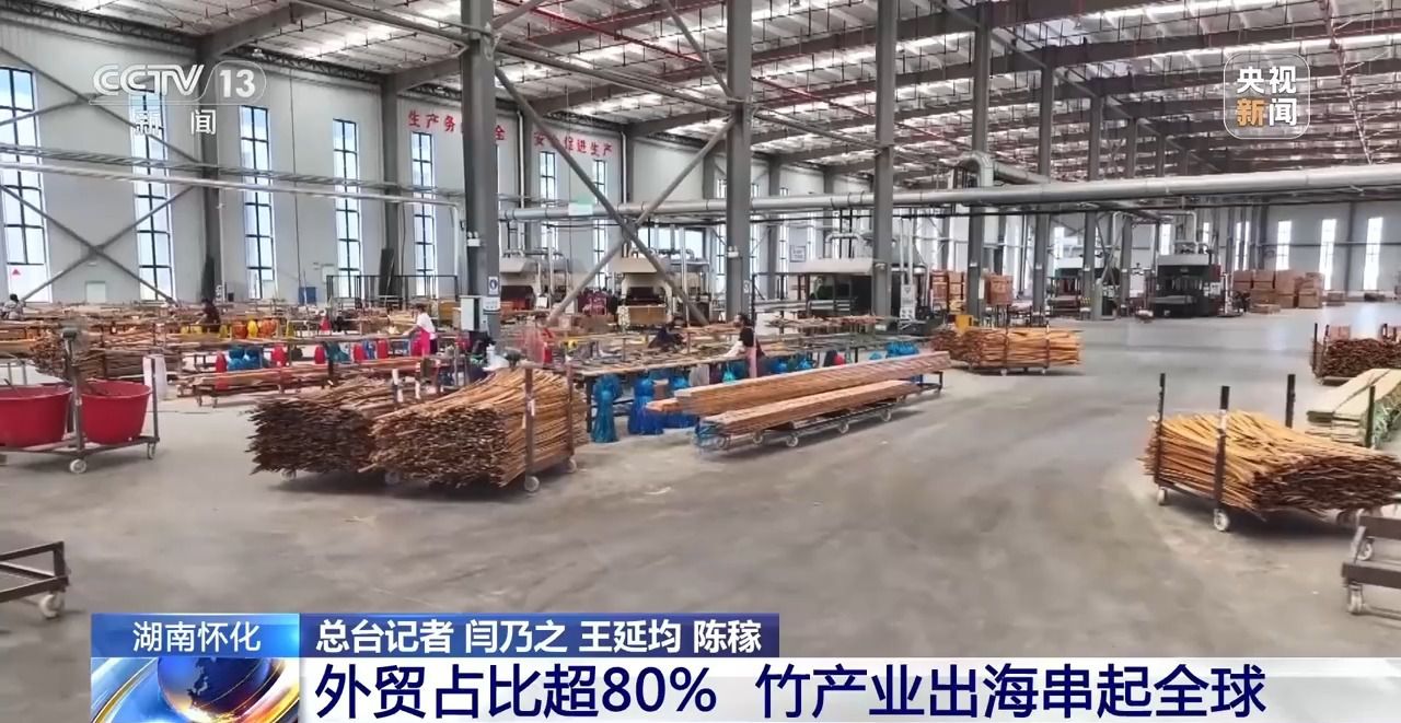除了皮具箱包产业,在怀化靖州,这里的竹产业也成为今年外贸增速较快的行业,出口产值占比超过80%。这里拥有国内规模最大的竹制车厢板制造企业,生产商品主要销往欧美和日本等。
