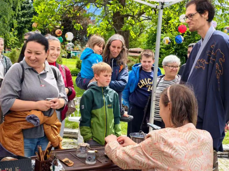 活动现场气氛热烈友好,牡丹主题图片展、非遗书画展示、牡丹茶点品尝、汉服试穿体验、绘画手工制作、图书文创义卖等活动,深受保加利亚民众的喜爱。此次活动得到索非亚中国文化中心的大力支持。