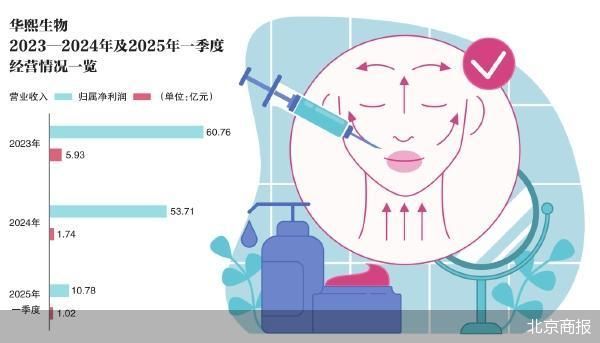 今年一季度,华熙生物营收、净利同样双降。财务数据显示,一季度实现营业收入约为10.78亿元,同比下降20.77%;对应实现的归属净利润约为1.02亿元,同比下降58.13%。