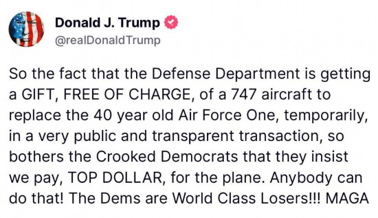 特朗普说:“我们是美国……应该拥有最气派的飞机。”