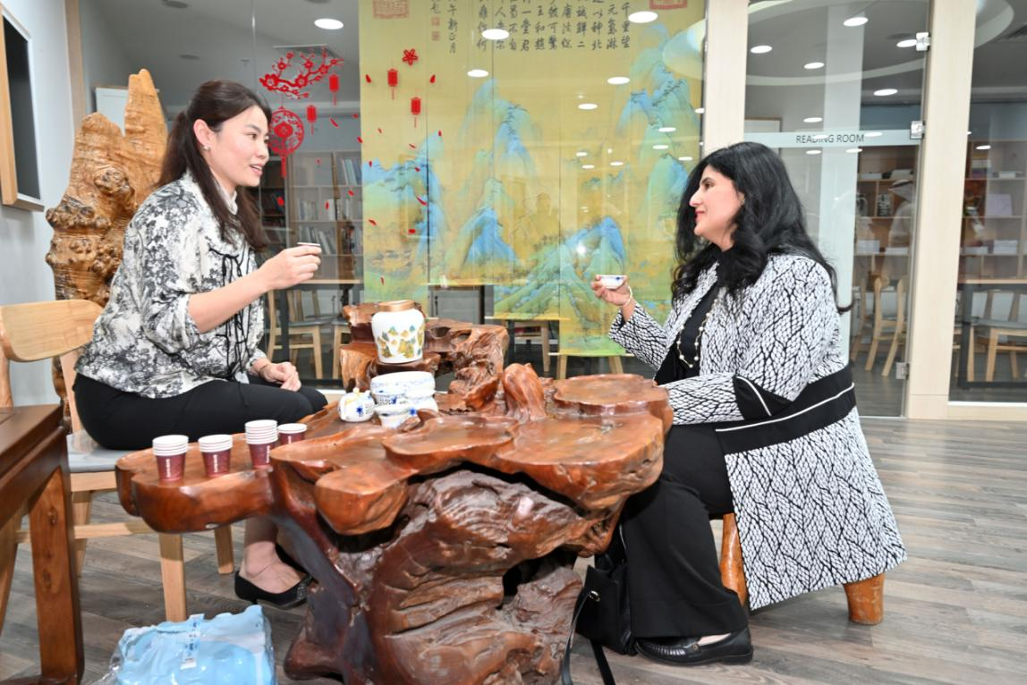 当日正值国际茶日,来宾们在现场还观看了传统茶艺表演,品尝了现代中国奶茶,欣赏制作精美的茶具。